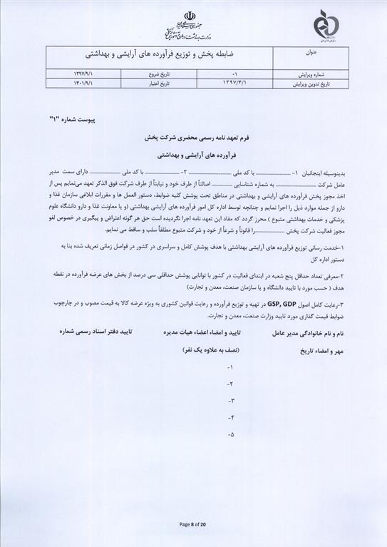 *۲- تصویر اساسنامه شرکت با مجوز فعالیت آرایشی بهداشتی