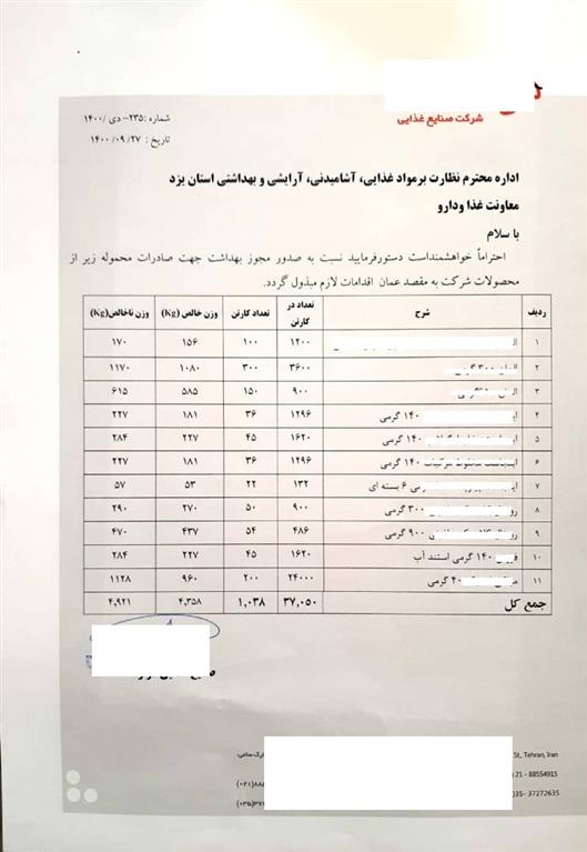 -تصویر پروانه بهداشتی تولید) ساخت، تولید قراردادی، صادرات، شناسه نظارت و …( که نام و علامت تجاری در آن قید شده باشد.