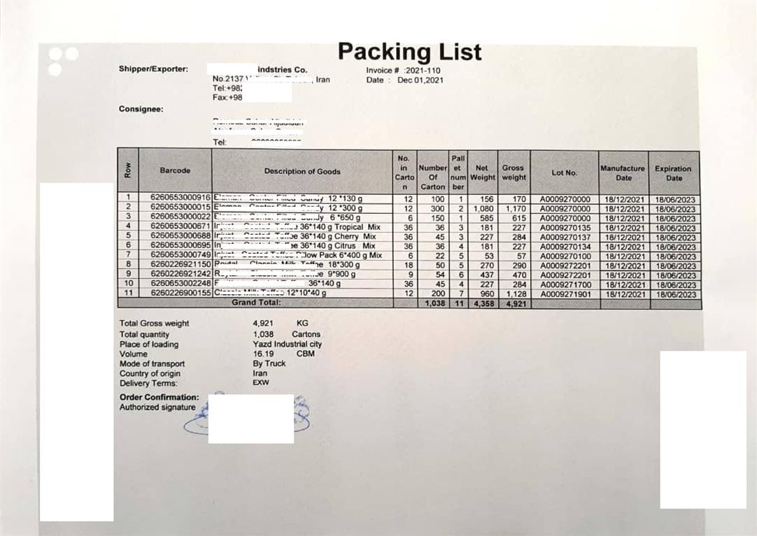 فرم گواهی بهداشت محموله ای جهت محصولات غذایی و آشامیدنی